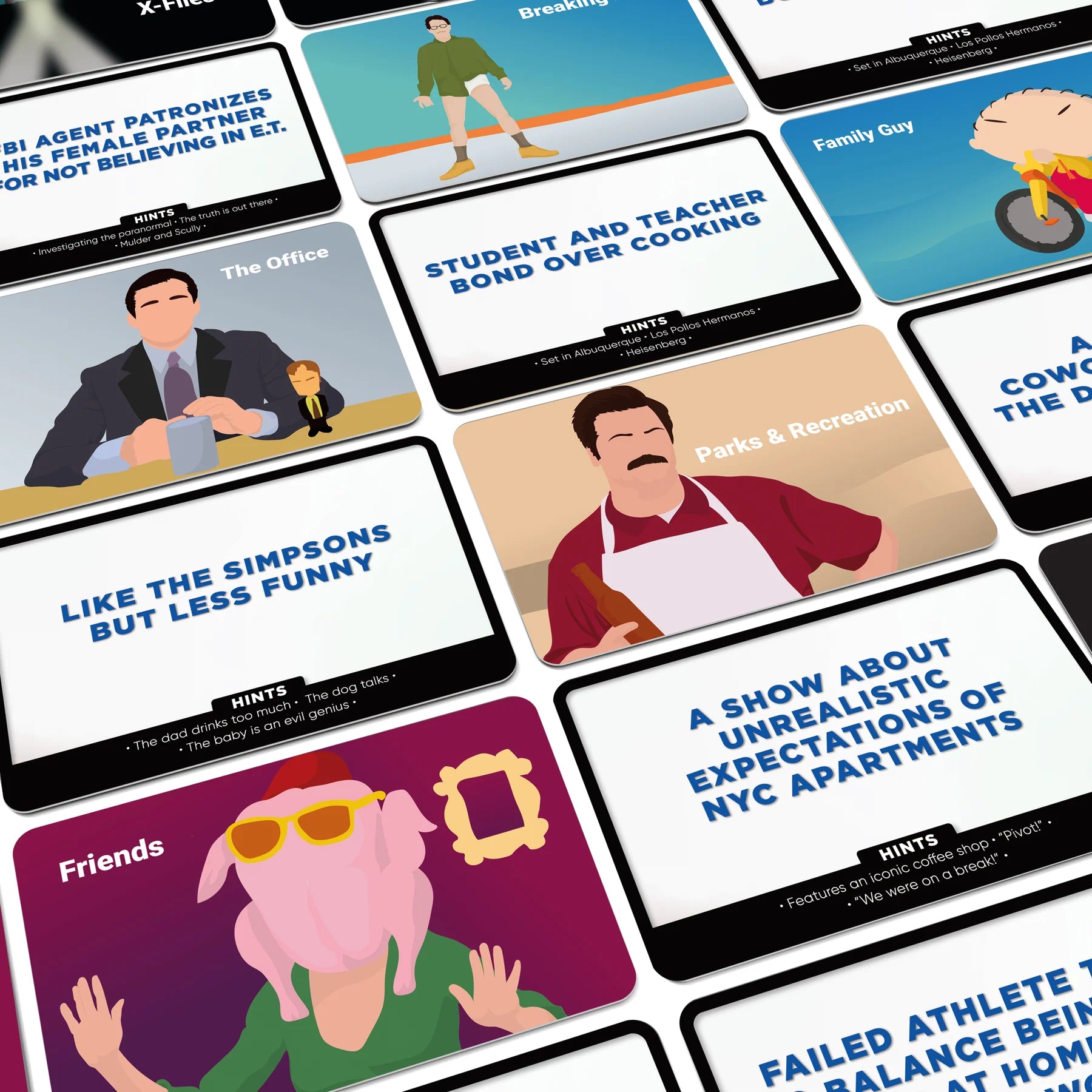 This TV shows game for soap opera and streaming lovers features 55 iconic modern and classic programs. And it’s your job to unravel the riddles, identify them and shout them out before anyone else!